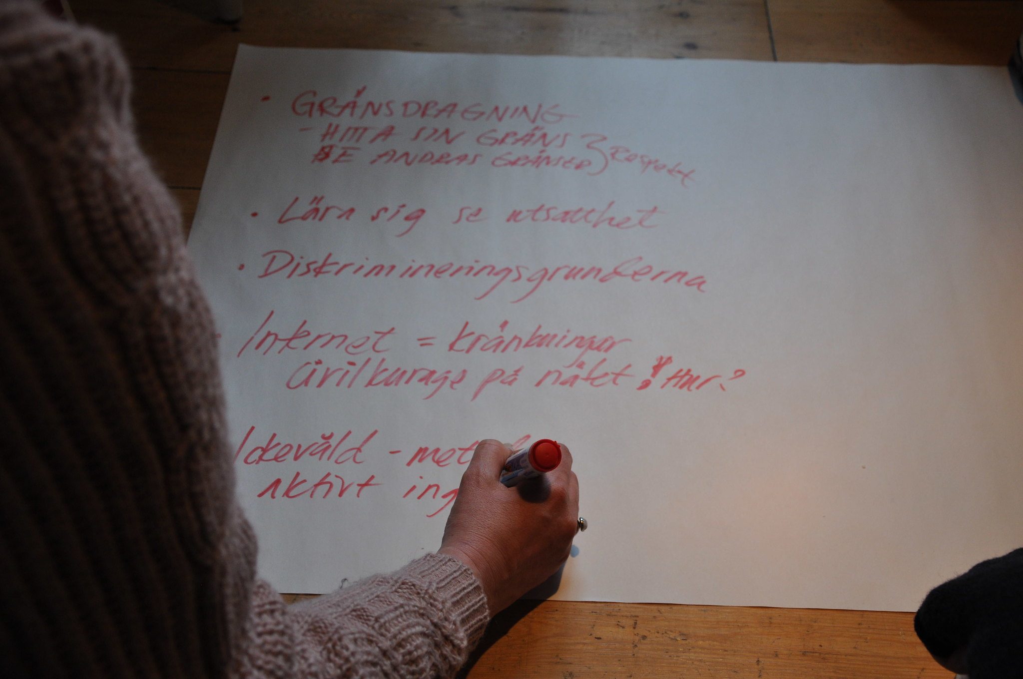 Genomförande: Samtala i stor grupp eller först i mindre grupper om vilka som är våldets pelare. Vad är det som bidrar till våld i samhället? Avgränsa gärna frågan till att handla om något mer konkret så som ”våld i Malmö, Sverige” eller ”i min skola i Mexico City”, osv. Rita upp dessa pelare och skriv […]