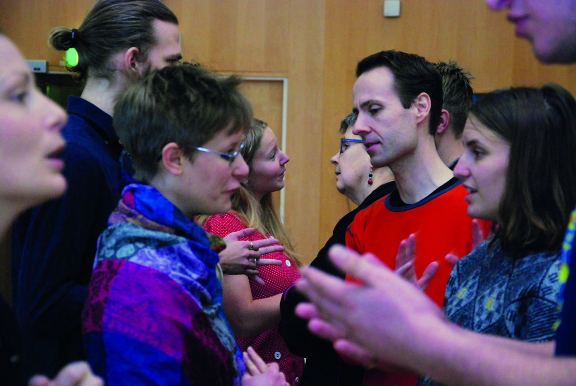Genomförande: Bilda en kör av gruppens medlemmar. Låt sedan deltagarna en och ställa sig framför kören som dirigenter. Dirigentens uppgift är att röra sig och försöka gestalta ljud med sig kropp, utan att prata eller själv använda ljud. Körens uppgift är att tolka dirigenten och låta som de tycker att hans rörelser borde låta. Det […]